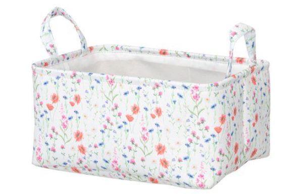 4Living Floreo, kankainen säilytyskori värikkäällä kukkakuviolla. Ihanteellinen tavaroille, joiden haluat olevan käden ulottuvilla mutta silti piilossa katseilta. Auttaa järjestämään tavarat ja käyttämään säilytystilan mahdollisimman hyvin hyödyksi. Materiaali päällinen 100 % polyesteri, vuori 100 % polyesteri. Pintapesu kostealla liinalla.