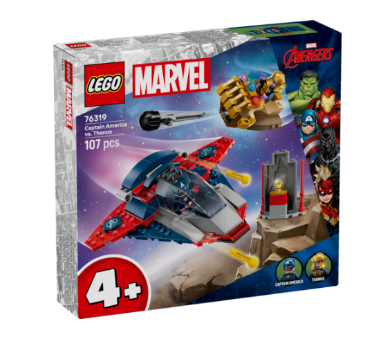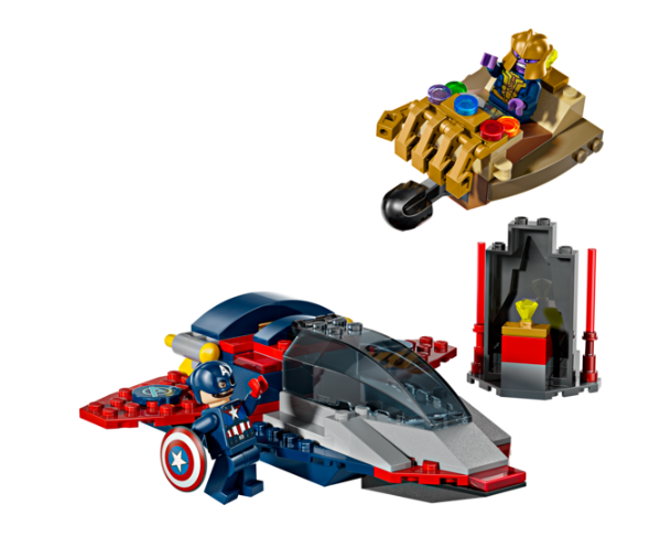 Captain America vastaan Thanos -setti on suunniteltu 4 vuotta täyttäneille tytöille ja pojille, jotka ovat supersankarien, avaruusalusten ja siistien ajoneuvojen faneja. Captain America -minihahmo kilpineen ja Thanos-minihahmo kypärä päässään ovat ikonisia hahmoja nuorten supersankareiden leikkeihin. Thanoksen alus on saanut inspiraationsa hänen Ikuisuuden rautahanskastaan, ja siinä on liikkuvat ”sormet” ja ohjusten laukausalusta, kun taas Captain America ohjaa Quinjetiä, jossa on 2 asetta ja avattava ohjaamo. Erillisen rakennelman kosminen jalokivi inspiroi mielikuvitusleikkeihin, joissa Captain America yrittää estää Thanosta varastamasta tätä arvokasta jalokiveä.