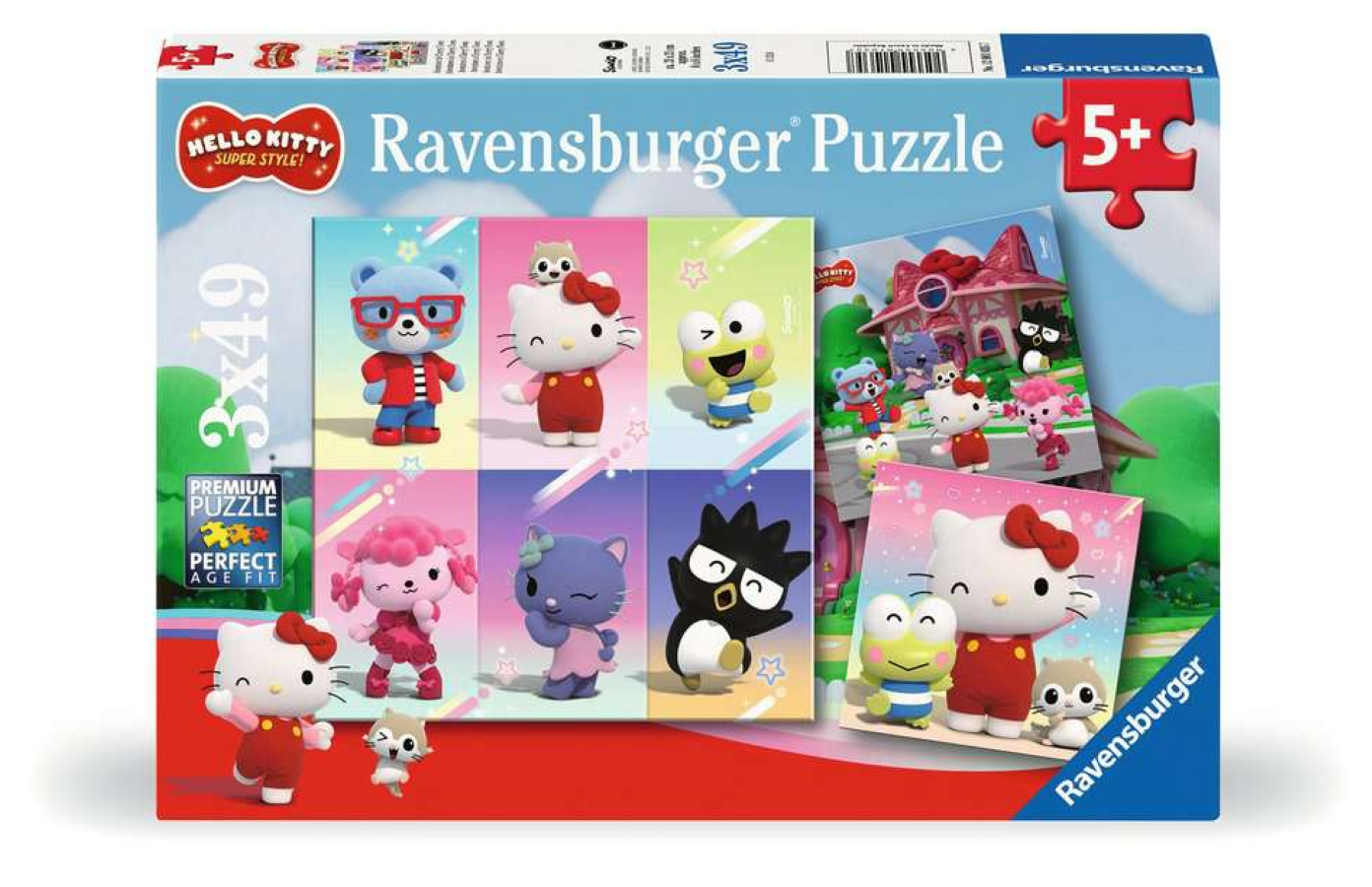 Hello Kitty Super Style 3x49p Löydä täydellinen palapeli! Ravensburgerilta löytyy täydellinen palapeli jokaiselle lapselle. Mielenkiintoisten motiivien ja strategisten palakokojen sekä erilaisten formaattien ansiosta onnistuminen on taattu kaikissa ikäryhmissä ja kaikilla vaikeustasoilla. Nauti Ravensburger-laadusta tällä perheystävällisellä aktiviteetilla! Ikä 5+