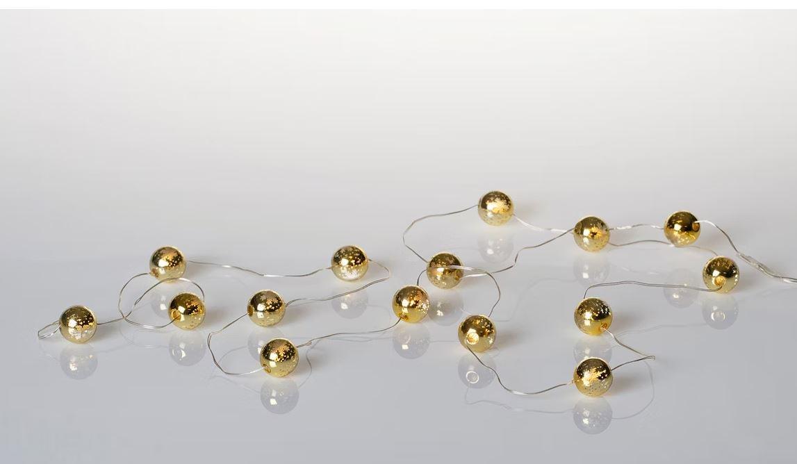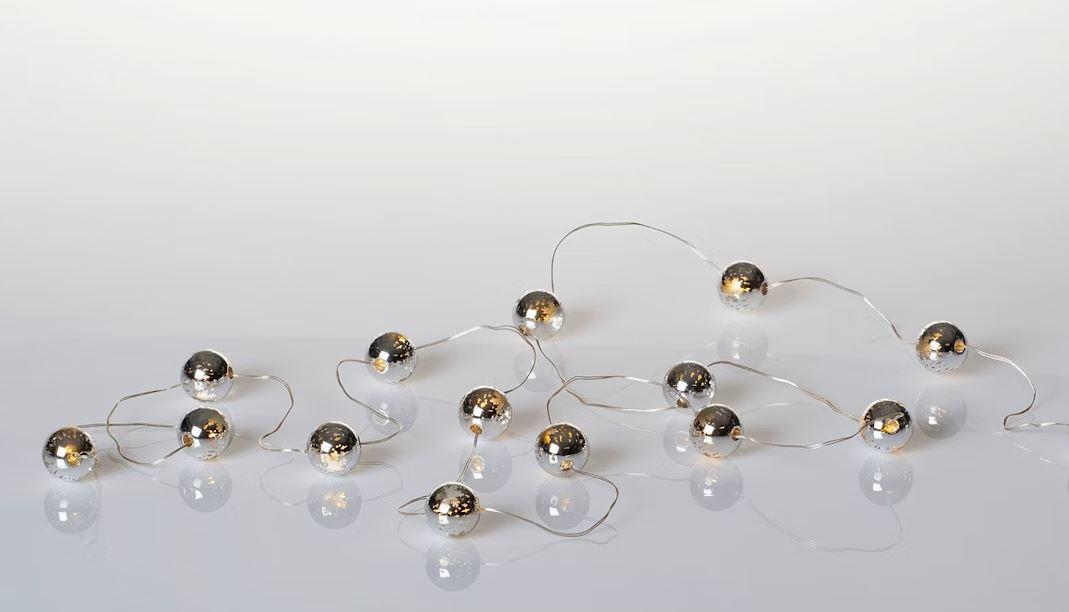Sisäkäyttöön tarkoitettu valosarja, jossa pienet kuulapallot.