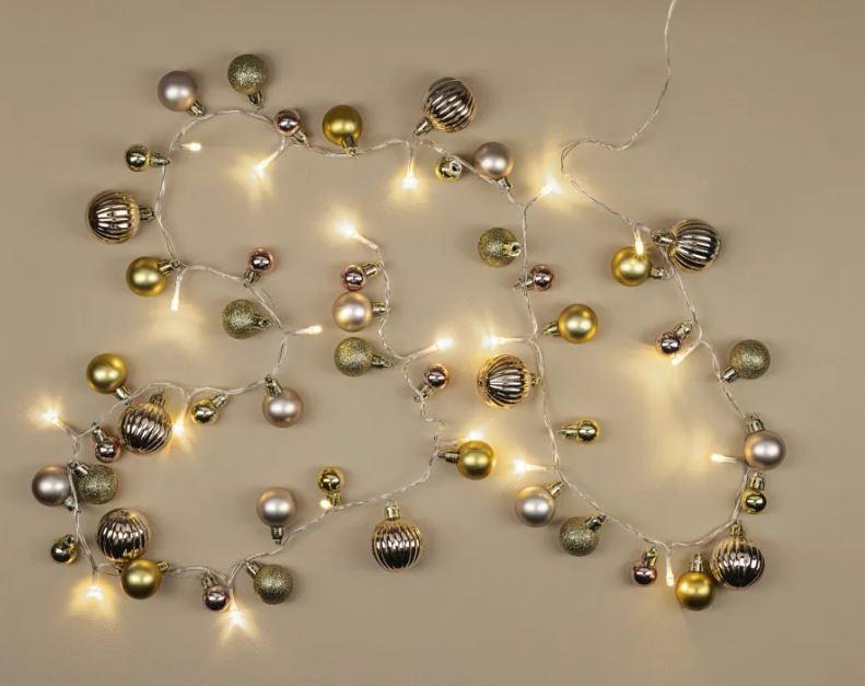 Juhlava koristesarja monipuoliseen somistamiseen. Ledien lisäksi sarjaa koristavat 48 palloa, joista osa kultaisia, kimaltelevia, ruusukullan sävyisiä tai vaaleanpunaisia, isompia, pienempiä, sileäpintaisia ja poimutettuja – upea kokonaisuus! Soveltuu sisäkäyttöön.