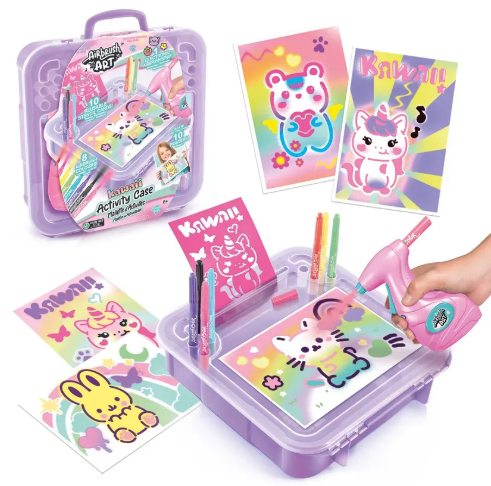 Airbrush Art -salkku sisältää kaiken, mitä tarvitset tehdäksesi upeita teoksia. Salkussa on mukana airbrush-suihke, tusseja, sabluunoita ja piirrustuspaperia. Salkussa säilytät kätevästi taideteoksesi ja tarvikkeet!