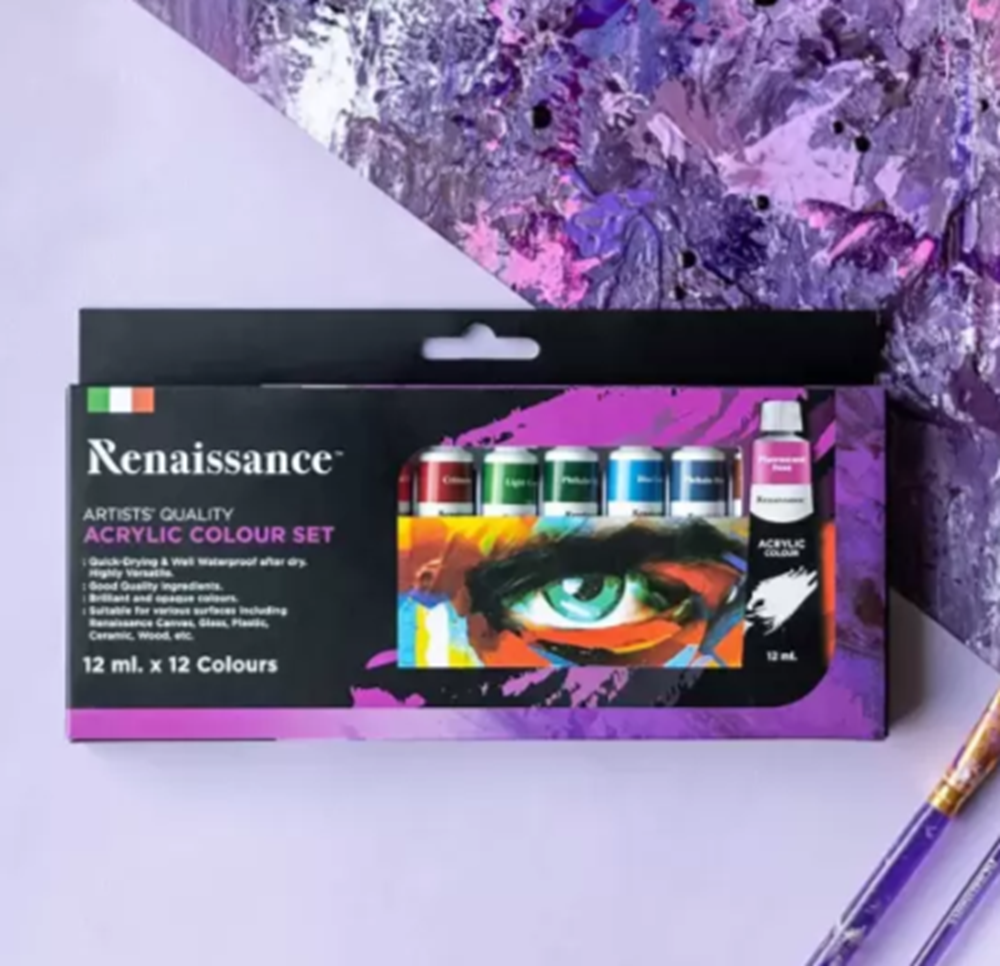 Renaissance akryylimaalit ovat myrkyttömiä ja CE-merkittyjä. Maalit levittyvät helposti ja pigmentti on erittäin peittävää. Maalit ovat vesiohenteisia eli niitä voi halutessaan ohentaa vedellä. Maalit tulevat kätevissä 12 ml tuubeissa. Pese työvälineet sekä kädet lämpimällä vedellä ja saippualla.