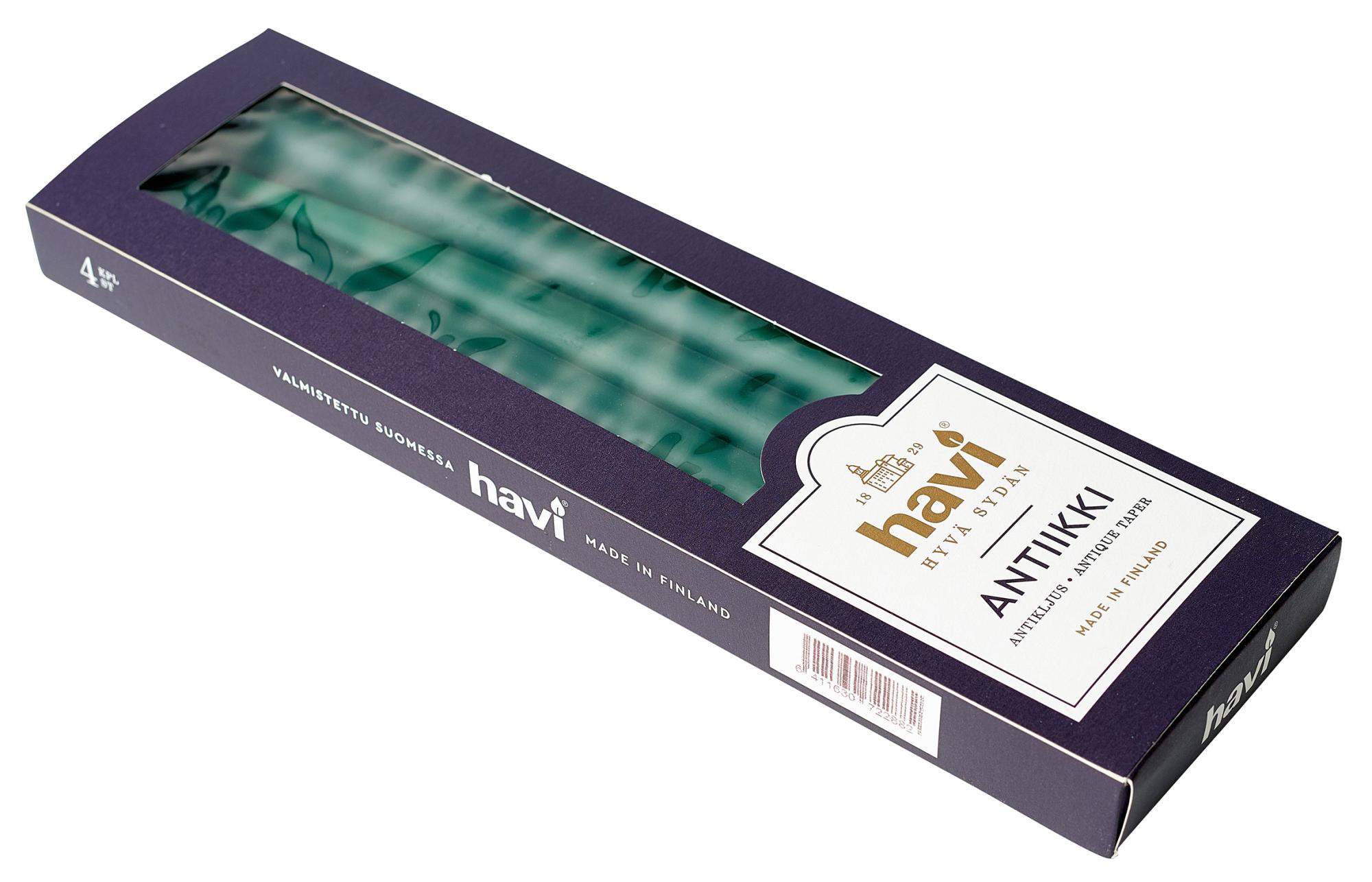 Havin kotimaiset havunvihreät antiikkikynttilät 4 kpl, paloaika 8 h