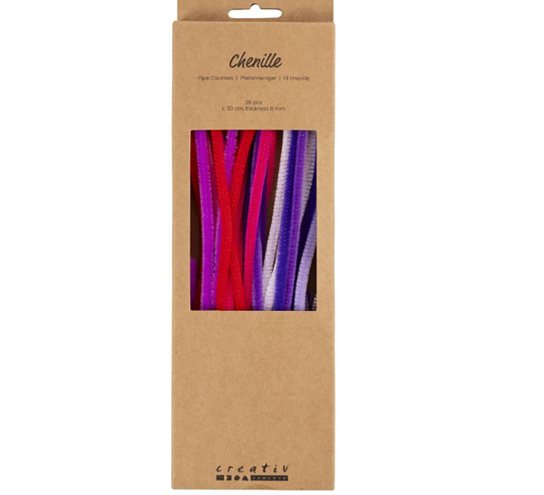 Askartelupunos 25 kpl/ 1 pkt, Pit. 30 cm, paksuus 6 mm, lila/pinkki sävyt