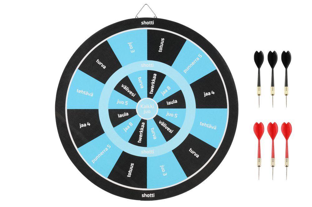 Hulvaton uutuus kesän pihapeleihin. Juomapelitikkataulu on hauska ja rento tapa yhdistää tikanheitto ja juomapeli. Kääntöpuolella perinteinen tikkataulu. Pelin kulku: Heittäminen: Pelaajat heittävät vuorotellen tikan taululle ja tarkistavat osuman kohdan. Toimintojen suorittaminen: Jokainen pelaaja noudattaa osuman mukaisia tehtäviä. Voittaja: Pelissä ei ole varsinaista voittajaa, hauskuus on rentoutumisessa ja yhdessä tekemisessä. Toimii myös erinomaisena mökkituliaisena sekä lahjaideana! Kääntöpuolella perinteinen tikkataulu. Taulun halkaisija 36 cm. Mukana 6 kpl tikkoja.