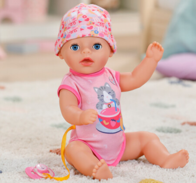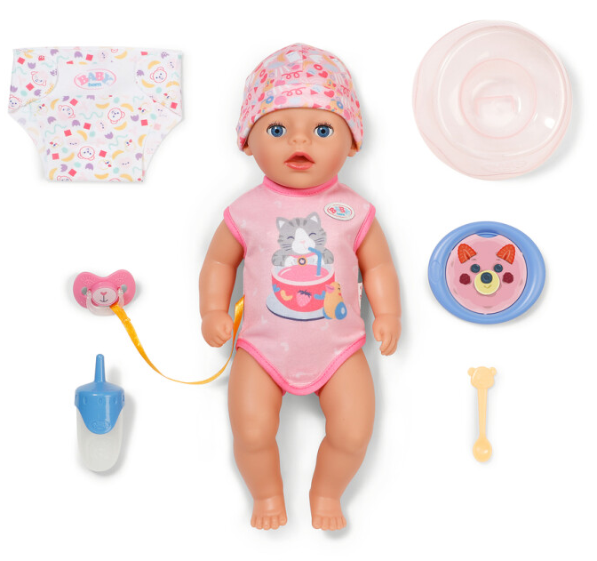 Kylvetettävä 36cm Lena nukke pinkissä bodyssa. Nukella on 7 toiminnallista ominaisuutta. Nukke sulkee ja avaa silmänsä taianomaisesti taikatuttia kääntämällä. Nukkea voi kylvettää, nukke juo vettä ja kastelee vaipan, jossa vedellä paljastuva yllätyskuva! Nukke käy myös potalla ja nukkuu. Nukelle on helppo pukea vaatteet. Nuken mukana tarvikkeita: potta, uudelleen käytettävä vaippa, tuttipullo, tutti, lautanen ja lusikka.