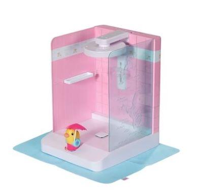 BABY born suihku hauskaan vesileikkiin. Suihku menee päälle ankkaa kääntämällä. Nukke on helppo kiinnittää telineeseen seisomaan suihkun ajaksi. Mukana myös suihkumatto.