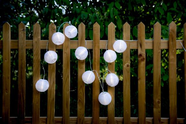 10 kpl sarja perinteisiä valkoisia pallolyhtyjä. Yhden pallon halkaisija 7,5 cm, pallojen väli 25 cm. Lämpimän valkoinen valo kajastaa kauniisti pallon läpi. Lyhtyssarja toimii sekä aurinkokennolla että muuntajalla. Kun auringonvalo ei enää riitä lataamaan ledeille riittävästi virtaa, vaihda tilalle muuntaja. Led 10 kpl lämmin valkoinen. Liitosjohto 3 m. Pakkauksessa mukana maapiikki aurinkokennolle.