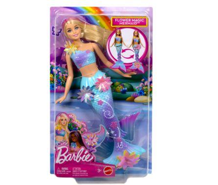 Barbie-merenneitonukke puhkeaa kukkaan! Vedä muotinuken selässä olevasta vivusta, niin nuken olkaimesta, vyötäröstä ja pyrstöstä ilmestyy upeasti kiiltävät kukkaset – myös veden alla! Nukella on kaunis sini-liila yläosa ja pyrstö, sekä helmipanta. 3+