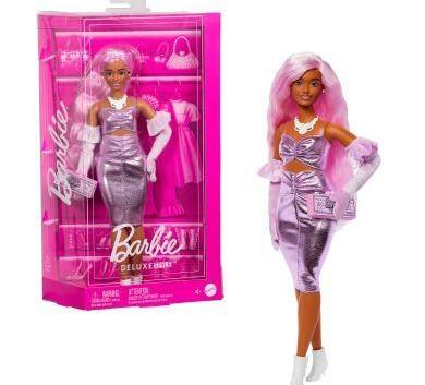 Barbie on vaaleanpunaisen glamourin edelläkävijä! Barbie-nukella on vaaleanpunaiset hiukset, upea kiiltävä kaksiosainen asu, samettikäsineet ja yhteensopivat asusteet. 3+
