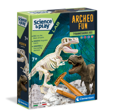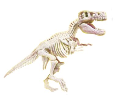 Paljasta miljoonia vuosia sitten hautautuneen Tyrannosaurus Rexin jäänteet kuin paleontologi konsanaan. Kokoa pimeässä hohtavat luut yhteen ja herätä hurja dino takaisin henkiin! Sisältää maa-aineksen luurankoineen, hakun ja vasaran. Ikäsuositus 7+.