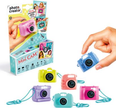 Trendikäs mini-digikamera, jonka voit ottaa mukaasi minne tahansa! Kiinnitä se laukkuusi avainrenkaalla ja ota kuvia ja videoita missä ja milloin tahansa! Mukana mini-näyttö ja värisuodattimet. Voit tallentaa kameran sisäiseen muistiin jopa 500 valokuvaa. Tallennustilan lisäämiseksi voit asettaa kameraan muistikortin (ei sisälly pakkaukseen). Saatavilla 6 erilaista. Kamerassa saa käyttää maksimissaan 64 GT muistikorttia.