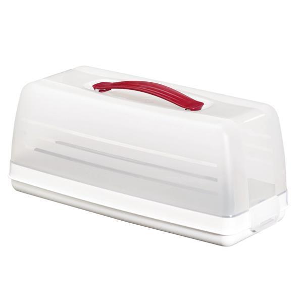 Curverin suorakaiteen mallinen kakkukupu, jossa on punainen kantokahva. Päädyissä lukot, joilla kupu pysyy paikoillaan kannettaessa. Sopii erityisesti voileipäkakkujen säilytykseen ja kuljettamiseen. Läpinäkyvän materiaalin ansiosta sisältö on helposti nähtävillä.