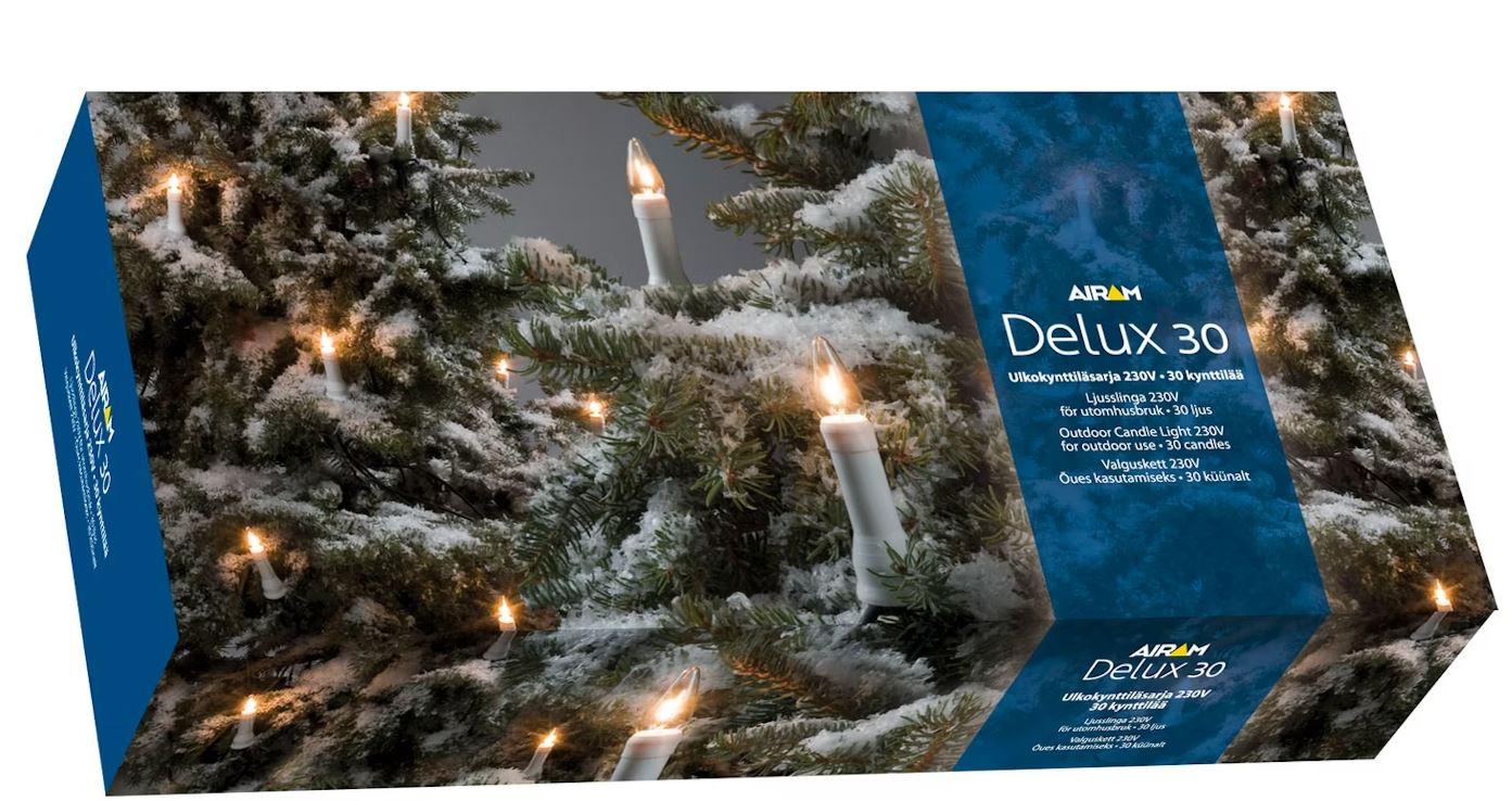 Sisä- ja ulkokäyttöön sopiva 30 kynttilän valosarja ympyräketjuna.