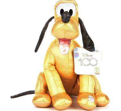 Upeasti kimalteleva Disneyn 100-juhlavuoden Pluto-pehmolelu äänellä.