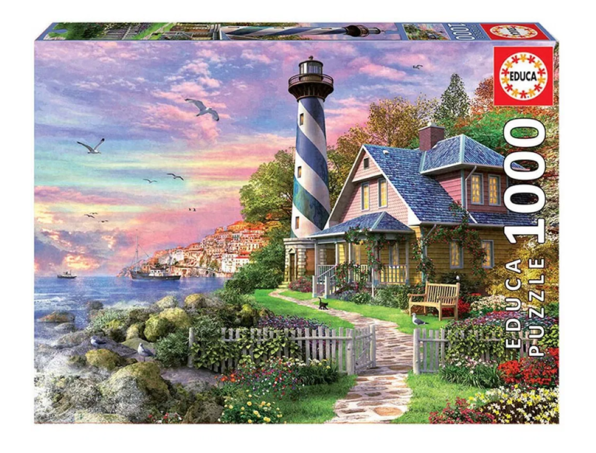 Educa Borras 1000 palan palapeli, jossa kuva kivikkoisesta rannasta, jonka kukkulalla on kaunis majakka ja talo. Kootun palapelin koko: 68 x 48 cm. Pakkaus sisältää Fix Puzzle liiman. 12+.