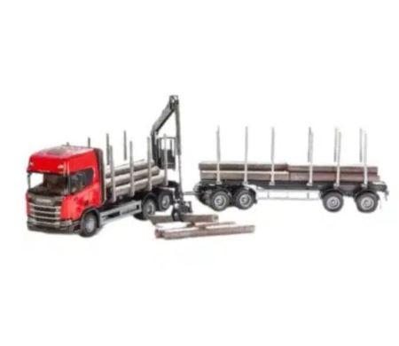 Pinoa tukit kyytiin aidonnäköisellä Scania-tukkirekalla! Tukkirekka on upea pienoismalli aidosta Scanian tukkirekasta. Rekassa on korotettu H-hytti, liikuteltavat pankot, ohjaamonosturi, tukkinosturi ja peilit. Vetoautossa takapyöräjousitus. Mukana tulee myös tukkeja.