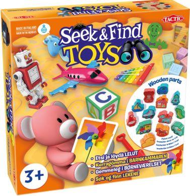 Tervetuloa leikkimään! Leikkihuone on hauskan leikin jäljiltä aivan mullin mallin. Jotta leikki voi jatkua, tarvitaan mestarietsijää! Käännä kortti, etsi nopeasti kortissa näkyvä lelu pelilaudalta ja nappaa itsellesi lelunappula. Mitä leluja sinä onnistut löytämään? Taitavin lelujen etsijä voittaa! Lelujen etsiminen kehittää lasten havainnointikykyä hauskalla ja viihdyttävällä tavalla! Sisältää myös hauskan lisäpelin, jossa aikuinen piilottaa lelunappuloita pelihuoneeseen.