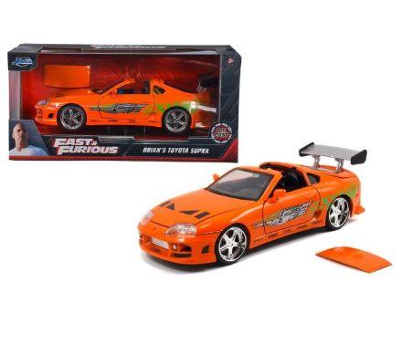 Täydellisen tyylikäs – Brian O’Connerin oranssi 1995 Toyota Supra – tuttu elokuvasta 2 Fast 2 Furious. Metallivalettu (die-cast) auto, jossa on yksityiskohtainen muotoilu ja sisustus, vapaasti pyörivät pyörät, avattavat ovet, tavaratila ja konepelti. Auton koko on 21 cm, mittakaava 1.24. Jadan valmistama virallinen ja aito kopio isosta esikuvastaan. Sopii lapsille ja kaikille Hurjapäille, Fast & Furious -faneille 8-vuotiaista alkaen.