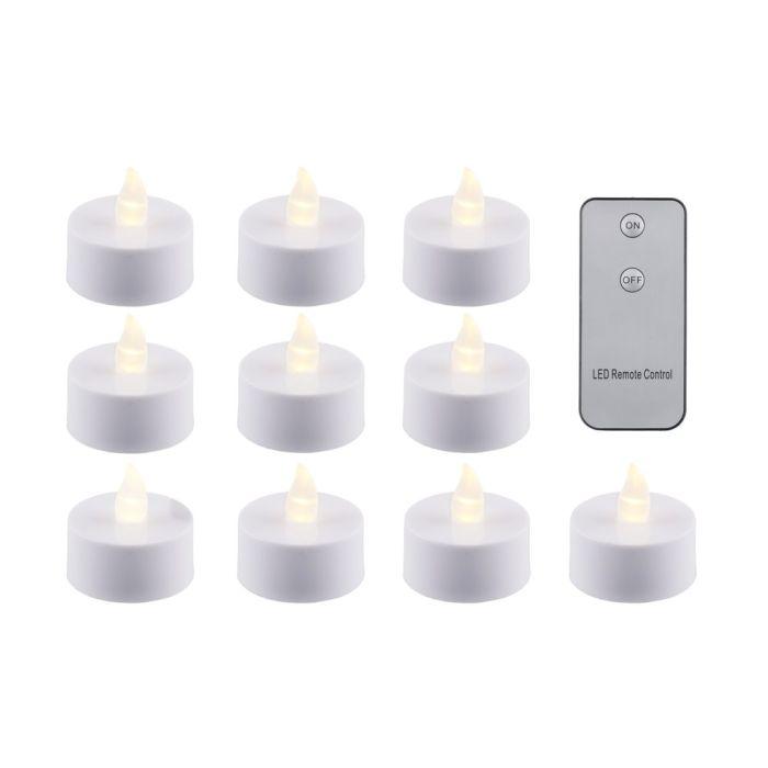10 kpl kauko-ohjattavia tuikkivia LED-kynttilöitä. Lämmin valkoinen LED. IP20, vain sisäkäyttöön. Kynttilän halkaisija 4 cm.