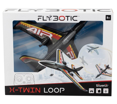 Flybotic X-Twin Loop on kevytrakenteinen 3CH lentokone, joka on suunniteltu ulkokäyttöön. 2.4GHz ohjain tehokkailla kaksoismoottorilla ja laskutelineellä. Koneella ainutlaatuinen “Stunt Looping” -silmukkatoiminta. Valmistettu pehmeästä ja kestävästä EPP-vaahtomuovista. Liikkuu eteenpäin, ylös, oikealle ja vasemmalle. 3-kanavainen ohjaus. USB. Etäisyys 50m. Latausaika 30 min. Ikäsuositus 8+