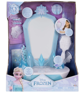Upea ja taianomainen Elsan kampauspöytä, jossa valot, äänet ja musiikki aktivoituvat kosketuksen avulla. Sisältää hiusasusteita,koruja, hiustarroja ja ohjevihkosen. Ikäsuositus 3+