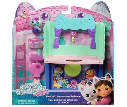 Sukella kuplivaan rentoutuksen ja mielikuvituksen maailmaan Merikatin -kylpyhuoneella, joka on saanut inspiraationsa Gabbyn Nukketalo: Elokuvasta! Tämä 10-osainen leikkisetti sisältää Merikatti-hahmon, tyylikkäitä kylpyhuonekalusteita ja hauskoja tarvikkeita, jotka muuttavat jokaisen leikkihetken maugiseksi kylpylä-päiväksi.