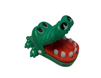Et koskaan tiedä minkä hampaan kohdalla tämä iloinen krokotiili napsauttaa leukansa kiinni ja sormesi jää sen kitaan! Krokotiililla on seitsemän hammasta, joista yhtä tiettyä hammasta painamalla suu loksahtaa kiinni. Hammas, josta suu menee kiinni vaihtuu aina joka kierroksella, joten tätä et pysty ennalta arvaamaan! Krokolla mittaa leuasta hännänpäähän 7 cm. Lajitelmassa kaksi väriä. Ikäsuositus 3+ vuotta. Tuotteen mittatiedot: 7 x 5,5 x 4 cm – 0,04 kg