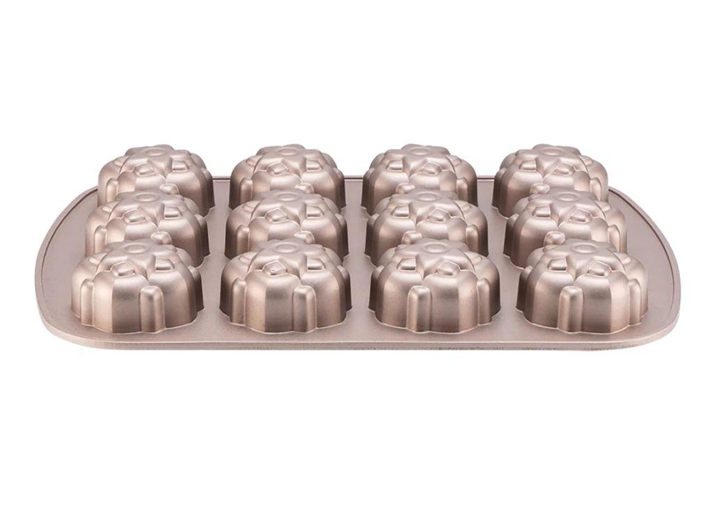 Kestävä ja kaunis ruusukultainen valualumiininen vuoka johtaa lämmön nopeasti ja tasaisesti ja tästä syystä kakut kypsyvät kauniin kullan ruskeiksi.