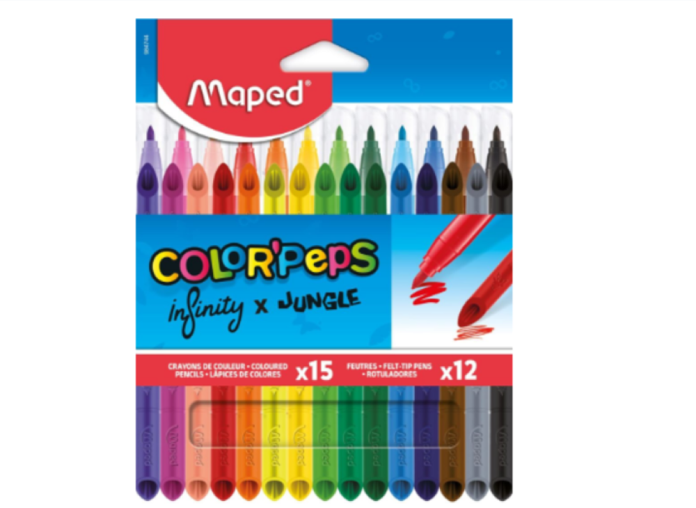 Infinity on täysin uudenlainen värikynä, joka on 100% väriä ja 0% roskaa! Voit värittää näillä kynillä jopa 10 kertaa kauemmin kuin perinteisillä värikynillä, ja voit hyödyntää terävää ja laveampaa kärkeä. Alkuperäinen Mapedin patentoima design. Tuote täyttää leludirektiivin vaatimukset. Kolmionmallinen runko, 15 eri väriä pakkauksessa.
