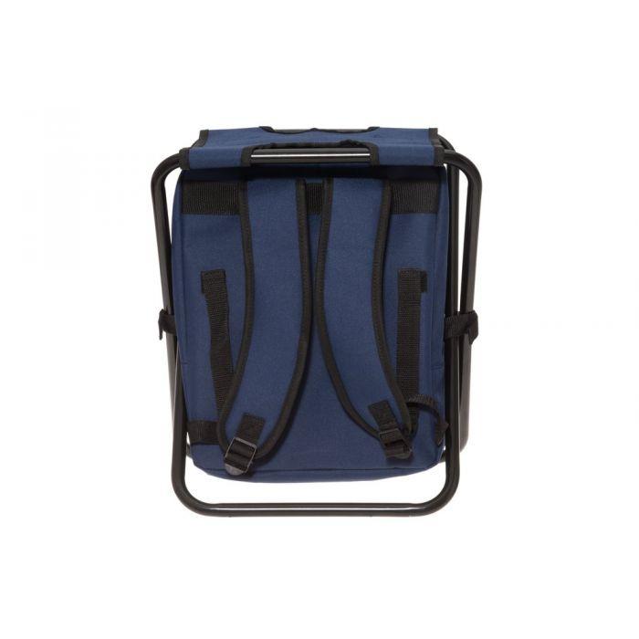 Retkelle, leirintäalueelle, kisoihin, katsomoon, piknikille. Tuoli ja reppu samassa. Kaksi vetoketjua, edessä vetoketjullinen tasku, topatut säädettävät selkähihnat. Tilavuus 20.9L. Painoraja istujalle 100kg.