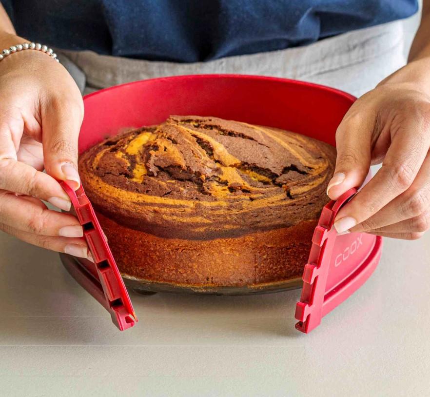 Silikoninen irtopohjavuoka lasipohjalla sopii käytettäväksi uunissa max 230 °C ja vuoka on helppo pestä käsin tai astianpesukoneessa. Kompakti vuoka vie hyvin vähän säilytystilaa sillä saat avattua vuoan tasaiseksi. Vuoka on helppo avata ja sulkea. Avaa vuoan reunat ja tarjoile kätevästi suoraan vuoan lasipohjalta ilman kakun siirtämistä erilliselle tarjoilualustalle. Pienet jalat lasipohjassa helpottavat siirtämistä.