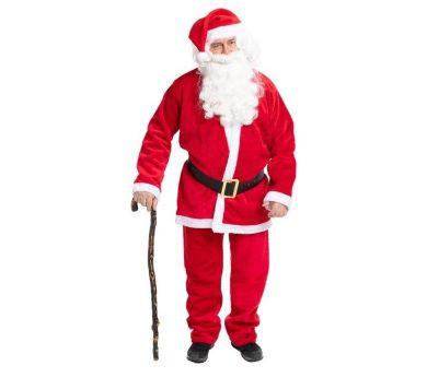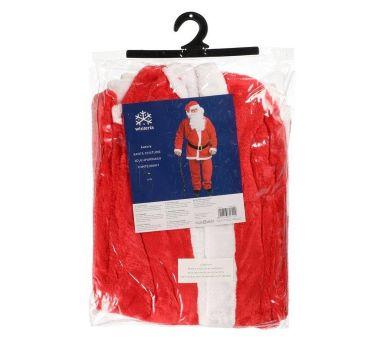 Sisältö: Reilun kokoinen takki, housut nauhalla kiristettävällä vyötäröllä, tonttulakki ja musta leveä vyö isolla kultaisella soljella. Koko: L/XL