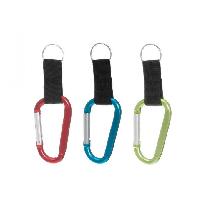 Karabiinihaka jossa on avainrengas. Yhden koko 0,20 g, 13,5 x 4 x 0,5 cm.