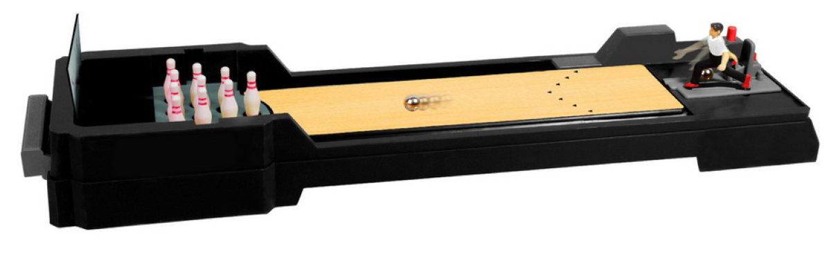 Tuleeko täyskaato? Hauska pöytäkeilauspeli, missä asetat ukkelin sopivaan kulmaan, laukaiset ja toivot kaikkien keilojen kaatuvan! Pelin pituus 65 cm. Ikäsuositus 3+ vuotta. Tuotteen mittatiedot: 65 x 16,5 x 9 cm – 0,968 kg
