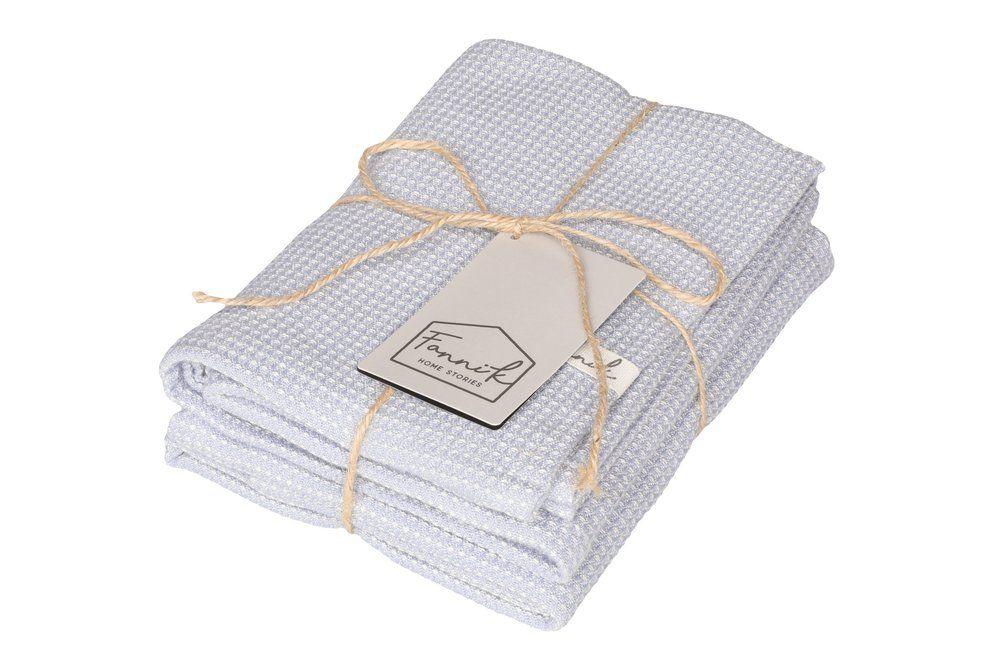 Fanni K Bamboo keittiöpyyhesetti sisältää kaksi keittiöpyyhettä kooltaan 50 x 70 cm. Materiaali on kudottua puuvillan ja bambun sekoitusta, joka kuivaa hyvin ja kuivuu nopeasti. Väri vaaleansininen. Materiaali 50 % puuvilla, 50 % bambuviskoosi. Vesipesu 40 astetta.