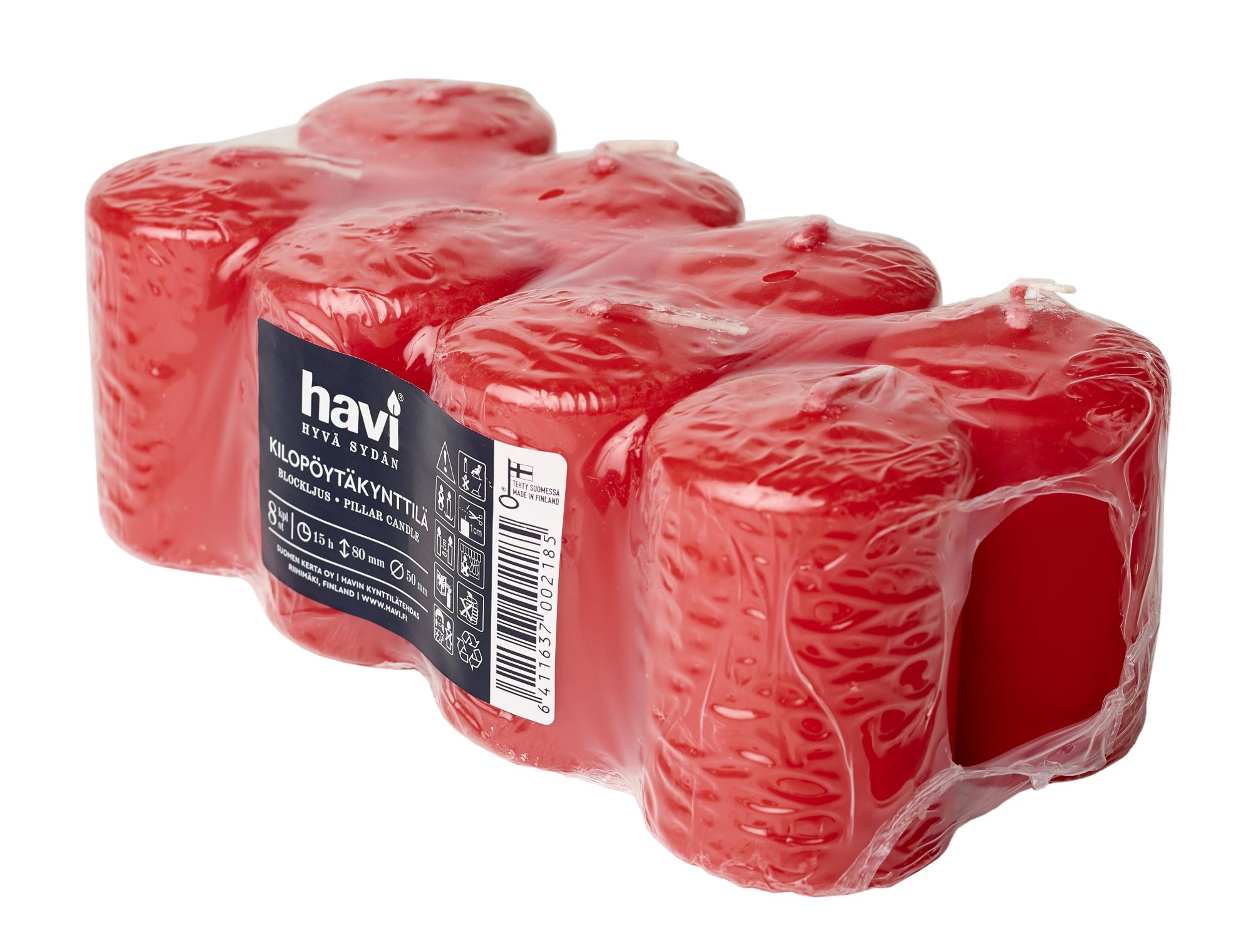 Kynttilän koko 5×7 cm, 8 kpl/pkt. Paloaika 15 tuntia.