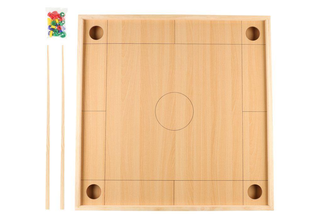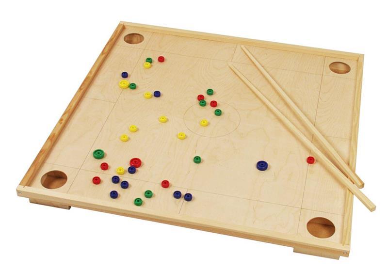 Klassinen koronapeli jännittäviin peli-iltoihin. Pelaajat lyövät kepeillä kiekon muotoisia nappuloita neliskulmaisen pelialueen kussakin nurkassa sijaitseviin purkkeihin. 2-4 pelaajaa. Ikäsuositus 6+.