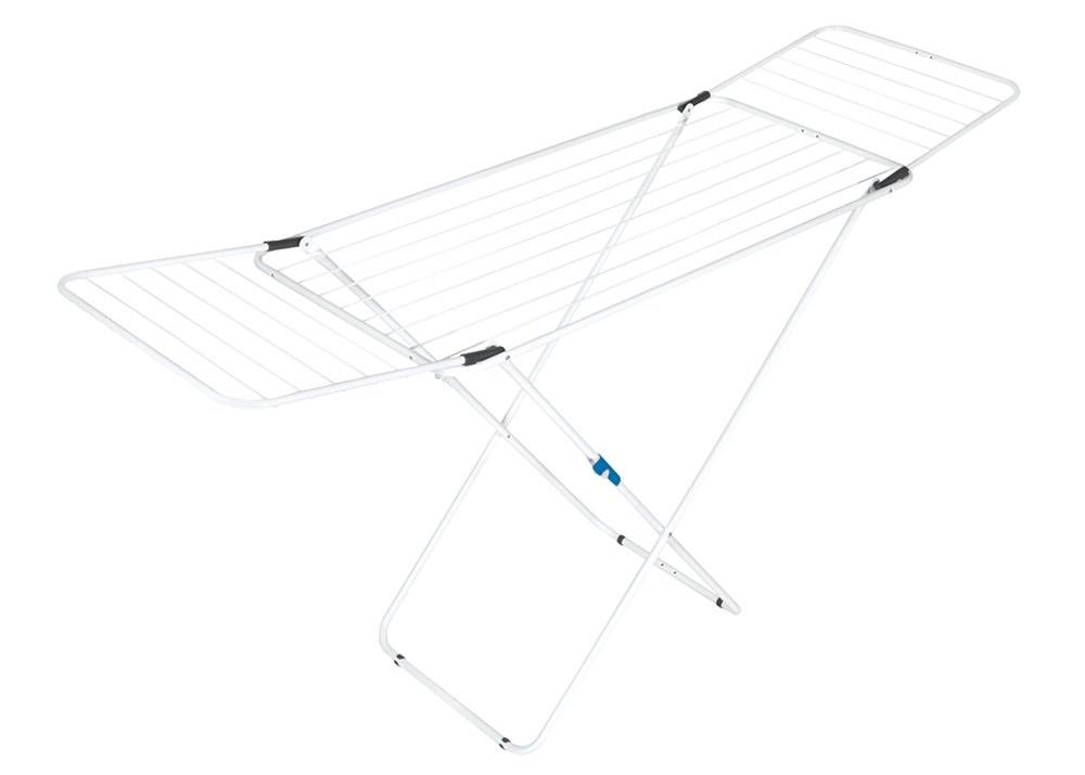 Tukevassa Lenni-kuivaustelineessä on kaksi lukitusjärjestelmää. Patentoitu ratkaisu lukitsee siivet, kun teline on taitettuna, mikä lisää käyttömukavuutta ja -turvallisuutta. Siivekkeet eivät aukea sormille tai jaloille, vaan siivekkeet todella pysyvät kiinni, ja pyykkiteline on helppo laittaa säilytykseen. Telineen ollessa auki jalat saa lukittua kiinni, eli käytössä Lenni pysyy tukevasti pystyssä. Ripustustilaa 18 metriä.