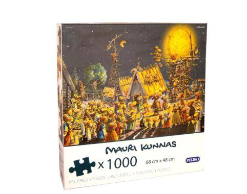 Mauri Kunnaksen piirrosjäljellä varustettu sadunhohtoinen palapeli, jossa on 1000 palaa. Yhden palan suuntaa-antava koko on n. 2 x 2,8 cm, palan muodosta riippuen. Palapeli on valmistettu kierrätyskartongista, ja sen koko on valmiina 68 x 48 cm. Palapelin kuva on Kunnaksen Kuka kaappasi auringon -kirjasta. Nauti rauhallisesta hetkestä palapelin äärellä, yksin tai hyvässä seurassa. Palapelin voi halutessaan vaikka kehystää seinälle tai koota myöhemmin uudelleen.