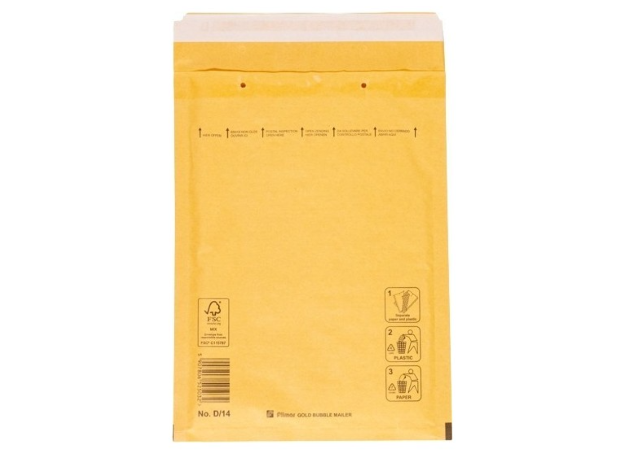 Valmistettu käsittelyä kestävästä ruskeasta voimapaperista, sisus pe-kuplamuovi. Läppä lyhyellä sivulla, tarrasuljenta.