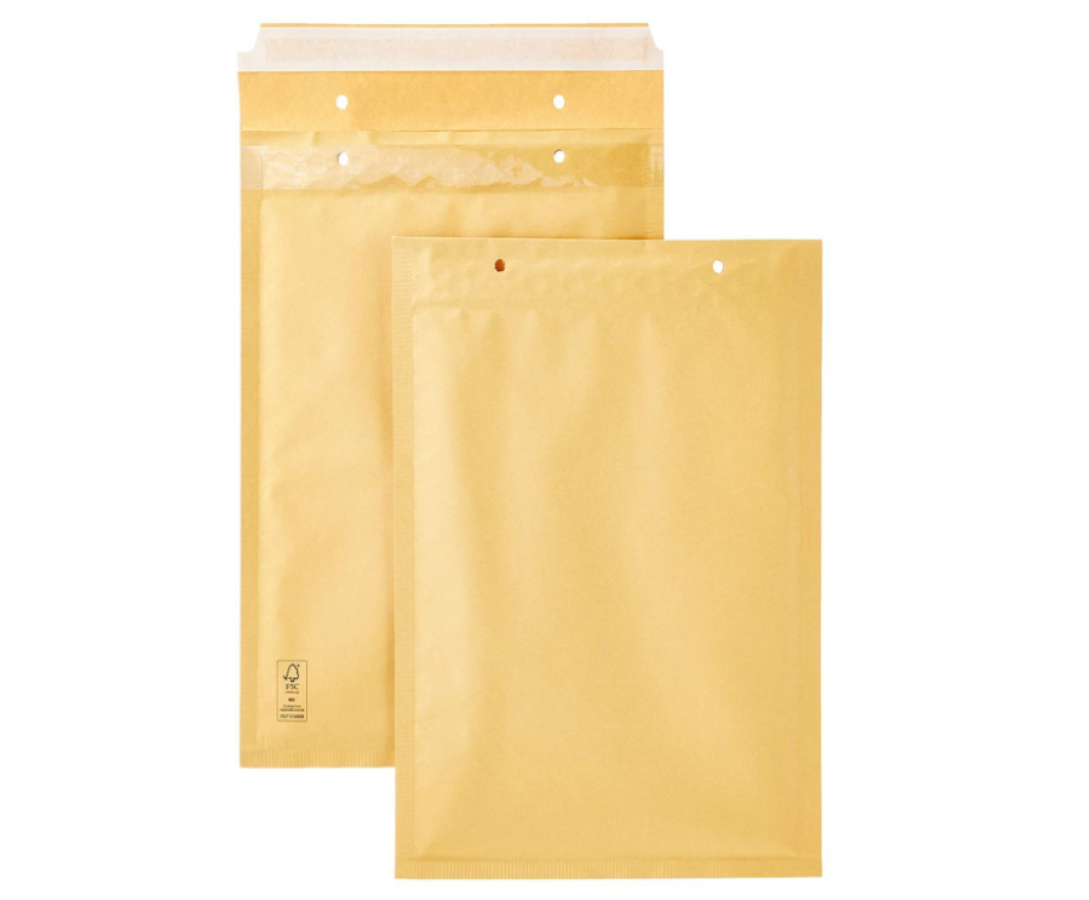 Valmistettu käsittelyä kestävästä ruskeasta voimapaperista, sisus pe-kuplamuovi.