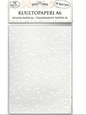 A6-kokoinen kuultopaperi askarteluun, koristeluun ja tulostukseen.