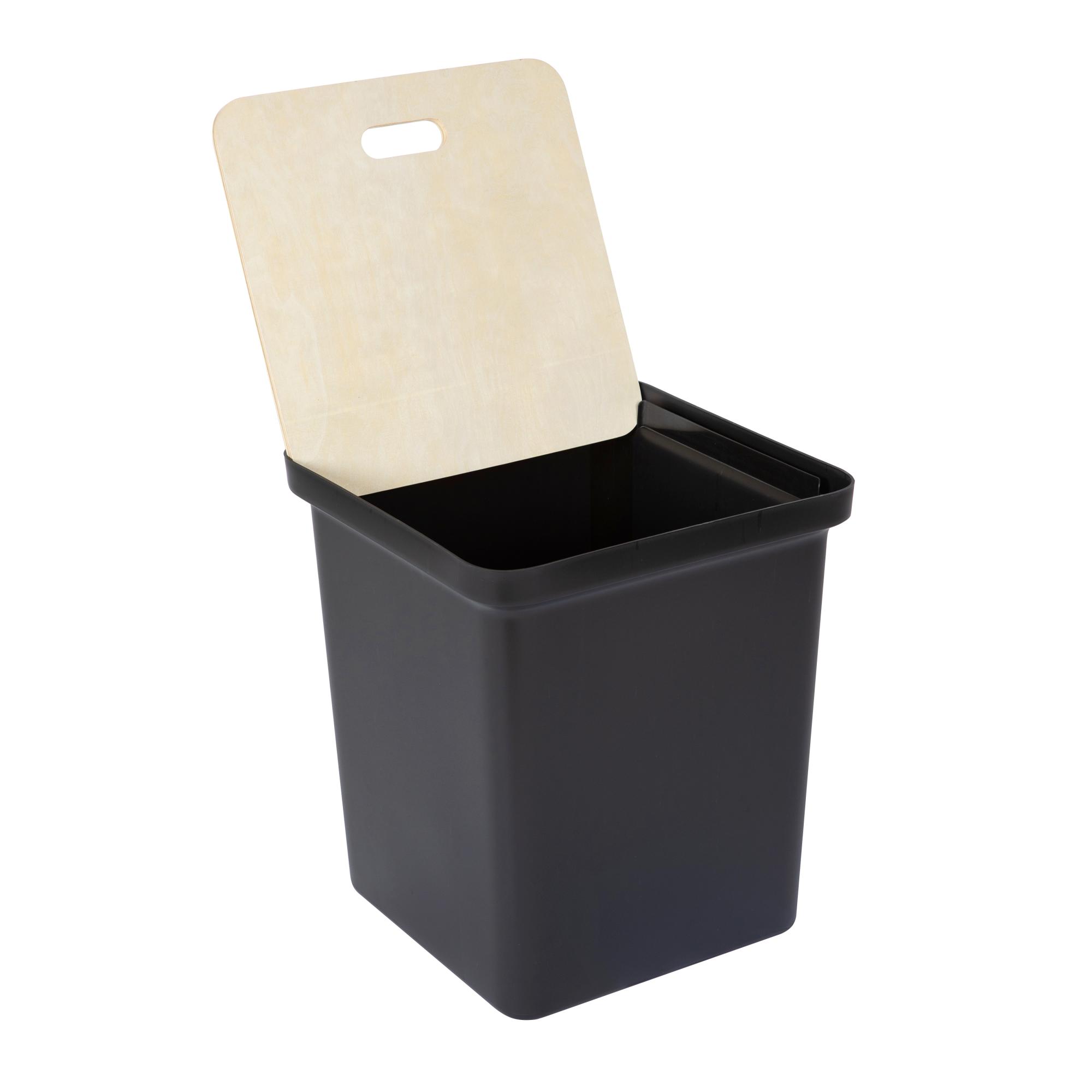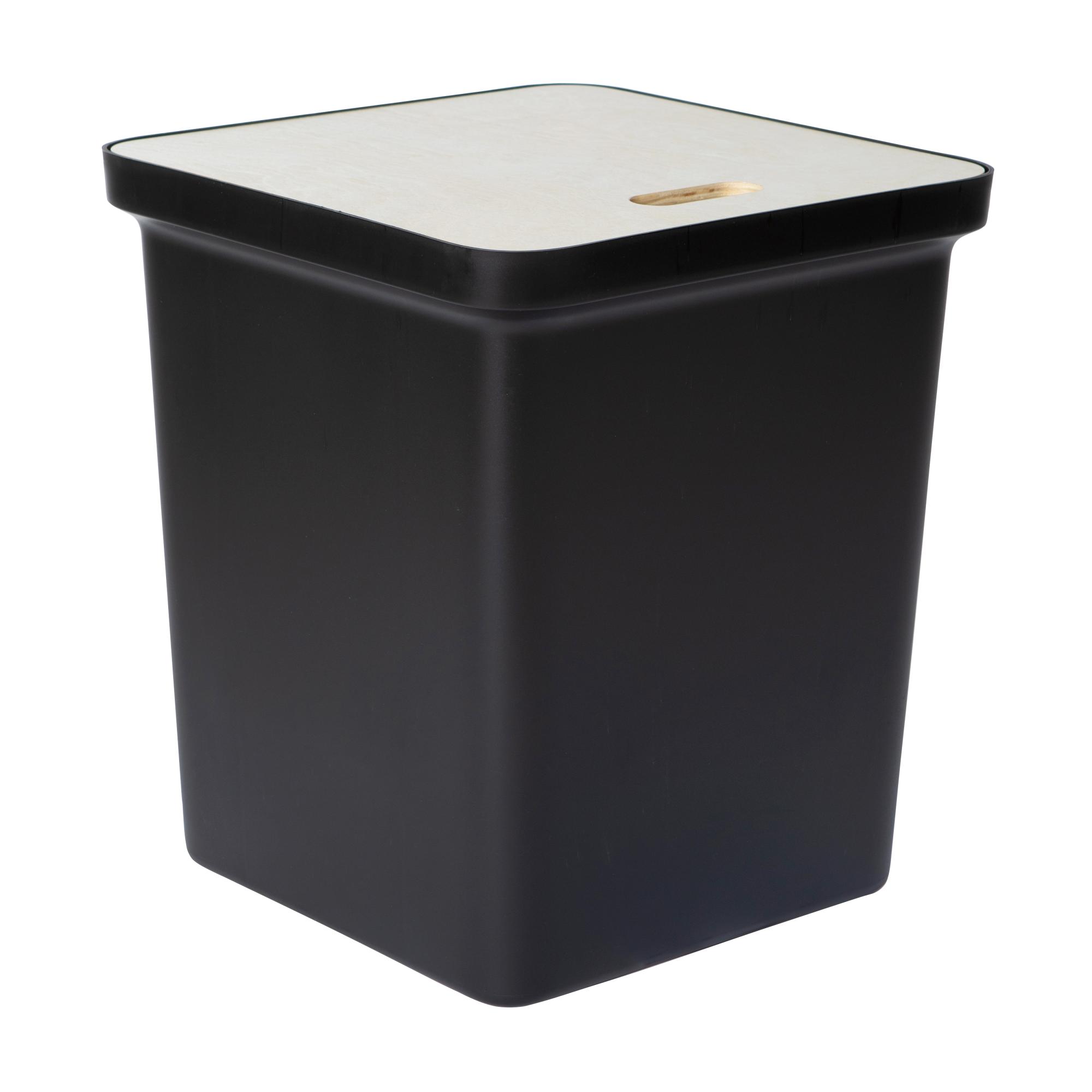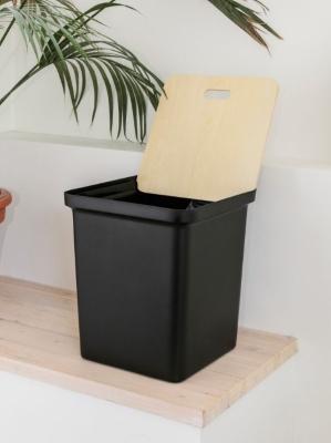 Lajitteluastiassa on kaunis vanerinen kansi, joka on valmistettu sertifioidusta koivusta. Kannen saa tarpeen mukaan asetettua auki-asentoon ja kiinni ollessa se kestää jopa istumisen. Lajitteluastia on valmistettu Suomessa ja sillä on viiden vuoden takuu. Monikäyttöistä astiaa voi käyttää myös tavaroiden säilyttämiseen