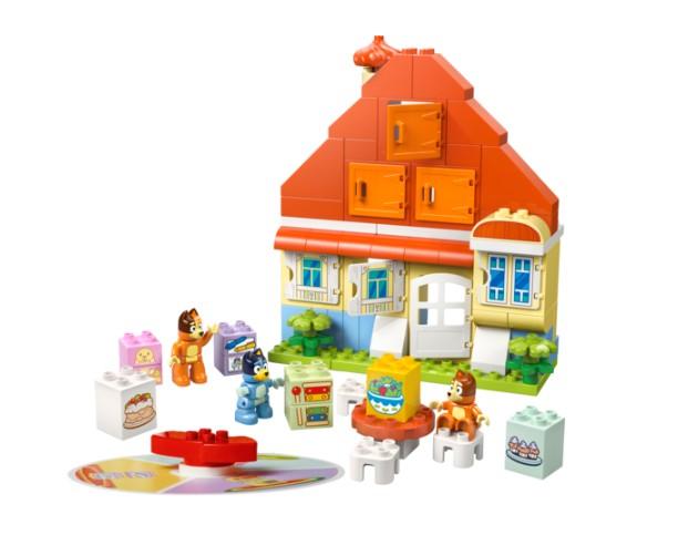 Noutajien perheen värikkäässä kodissa on avattavilla ikkunoilla varustettuja huoneita, pöytä ja 3 tuolia, mukana on myös hauska pelihyrrä. Seikkailuihin innostava lelu sisältää äidin, Bingon ja Blueyn, jotka ovat Bluey-TV-sarjasta tuttuja hahmoja, sekä Noutajien perheen talon yksityiskohtia kuvaavia palikoita, kuten Bingon Floppy-kanin. 4+.