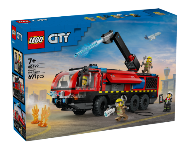 Yli 7-vuotiaille lapsille tarkoitettu LEGO® City Lentokentän paloauto (60499) on realistinen pelastusajoneuvolelu, jossa on 360° kääntyvä kattosammutin, avattavat sivulokerot ja säilytystilaa työkaluille. Lapset voivat ohjata autoa vivulla, käynnistää sammuttimen vesisuihkun ja irrottaa moottorin korjausta varten.