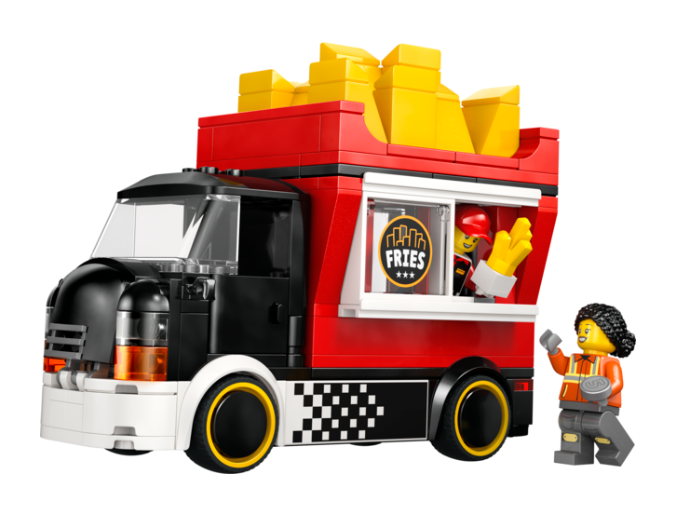 Kiertele LEGO® Cityä mahtavalla ranskanperuna-autolla. Valitse paikka, pysäköi auto ja siirry ruoanvalmistusalueelle. Käynnistä friteerauskeitin, avaa ikkuna ja tarjoile kaupungin kuuminta pikaruokaa tyylikkäästä kioskista, joka näyttää jättimäiseltä kullanväriseltä ranskanperunapakkaukselta. Oletko koskaan nähnyt herkullisemman näköistä katuruokaa? Kun kaikki asiakkaat ovat saaneet perunansa, hyppää rattiin ja suuntaa seuraavaan kohteeseen!
