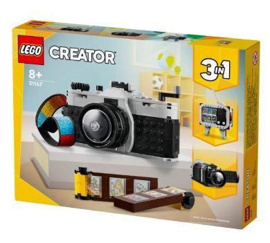 LEGO® Creator Retrokamera (31147) 3in1-rakennussetti innostaa yli 8-vuotiaat pojat ja tytöt mielikuvitusleikkeihin. Eeppisessä kameralelussa on liikkuva objektiivi, kuvauspainike kameran yläosassa, avattava takaosa palikoista rakennettavaa filmirullaa varten ja kankaasta valmistettu monivärinen kantohihna. Mukana on myös 6 tarraa, jotka voi kiinnittää filmirullan kuviksi.