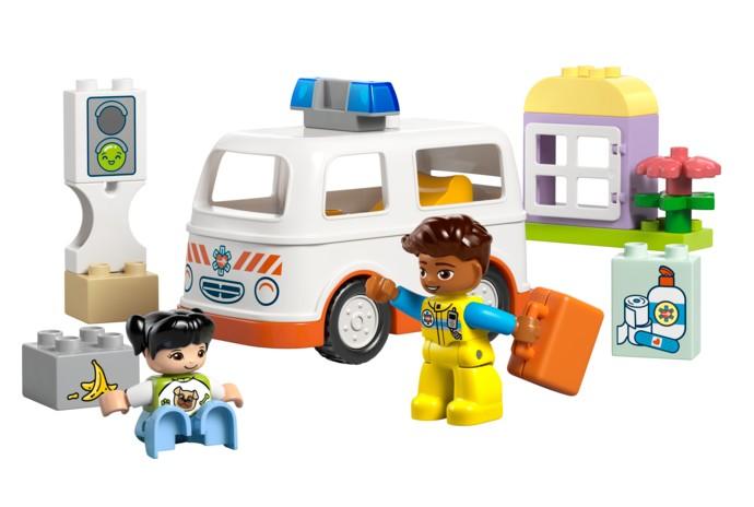 Taaperot pääsevät hoivaamaan Ambulanssi ja kuljettaja (10447) setin inspiroimassa roolileikissä, joka kuvaa onnettomuuspaikkaa. Alle kouluikäisten lelussa on ajettava ambulanssi ja 2 LEGO® DUPLO® hahmoa: ensihoitaja ja tyttö, joten luvassa on luovia mielikuvitusleikkejä.